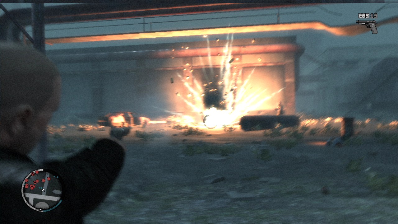 バイクを運転中、LBでソウドオフショットガンを発砲できる。