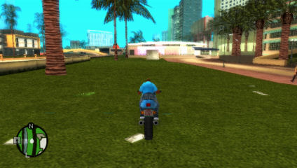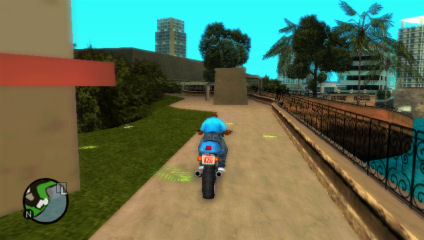 Vice City Mallの南出口を出たところにある歩道(Bribeがある)を東方向に加速し、車道の手前にある斜面を使ってジャンプ。