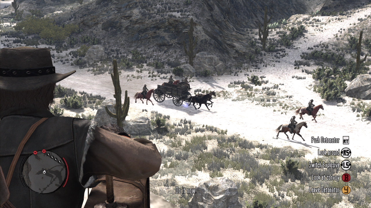 ダイナマイトをそれぞれ離して設置することで、より多くの馬車を破壊するチャンスが増える。